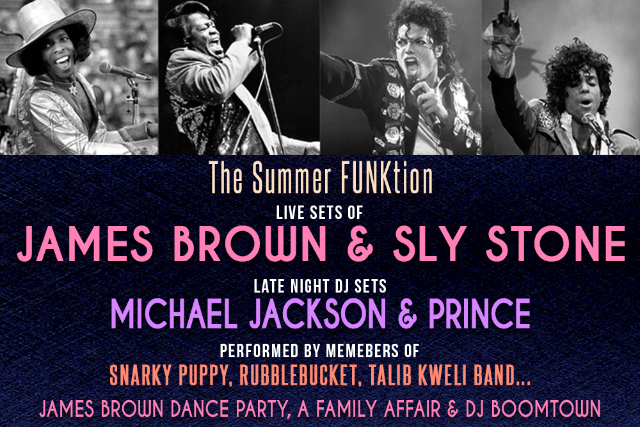 The Summer FUNKtion The James Brown Dance Party & A Family Affair: Sly Stone Tribute The Chase Brothers Chris Rob Michelle Willis Chris Bullock Adam Dotson Felix Pastorius Justin Stanton Followed by DJ Boomtown Spinning MJ & Prince Late-Night Less than 200 Tickets Available! 8pm Doors 9pm Show  Sign up to our Nolafunk.com Email list for exclusive pre-sale offers.
