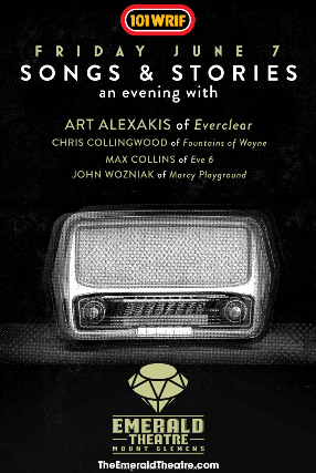 101 WRIF presents Songs & Stories: An Evening with Art Alexakis of Everclear, Chris Collingwood of Fountains of Wayne, Max Collins of EVE 5, John Wozniak of Mercy Playground at the historic Emerald Theatre on Fri, June 7.