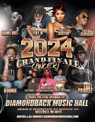 The 2024 Grand Finale Concert is set for Sunday, December 29th at Diamondback Music Hall! Get ready for an amazing night filled with live performances from TAY B, DAMEDOT, PRETTY BRAYAH, PAYROLL GIOVANNI, BOONIE, and TDOT PRINGLE!