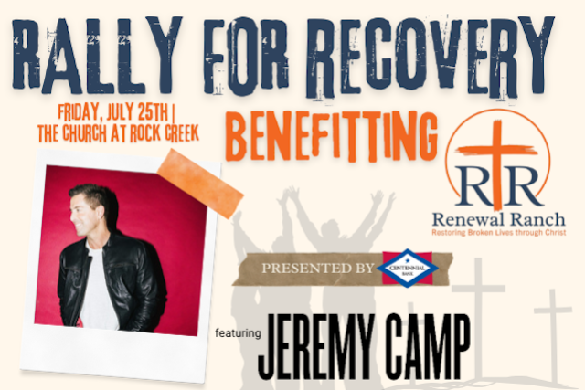 Renewal Ranch and Centennial Bank are excited to announce the 11th Anniversary of the Rally for Recovery with special guest Grammy Award Winning Artist Jeremy Camp.
