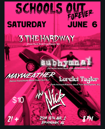 3 The Hardway, Subhymnal, Mayweather + Lorelei Taylor at The Nick June 6th Doors 7pm