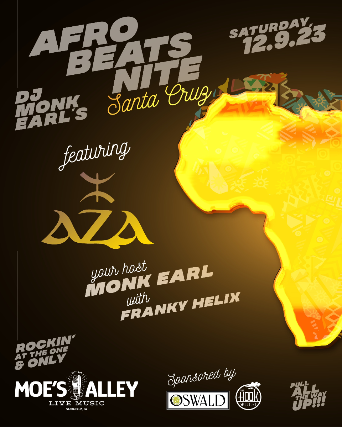 Afrobeats Nite Santa Cruz returns with special guests Aza and your host Deejay Monk Earl with Franky Helix!