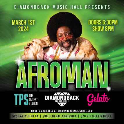 πβ¨ Come join us for an unforgettable in-person event at Diamondback Music Hall! πΆ Get ready to groove to the beats of the legendary Afroman. πΊ This is your chance to experience his iconic hits live and up close. π€ Don't miss out on this incredible opportunity to sing and dance along to songs like "Because I Got High" and "Crazy Rap"! π΅π₯