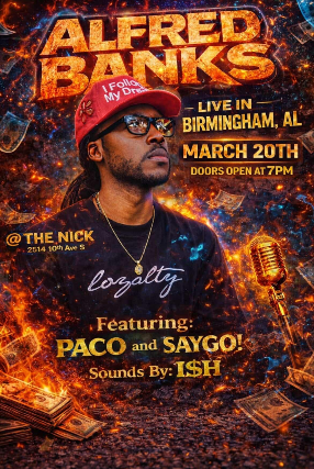 Alfred Banks Featuring PACO & SAYGO, Sounds By I$H at The Nick March 20th Doors 7pm