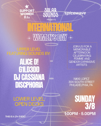Join Solar Sounds, SPICEWAVE, and Support Women DJs Philadelphia Chapter in celebrating International Women’s Day!