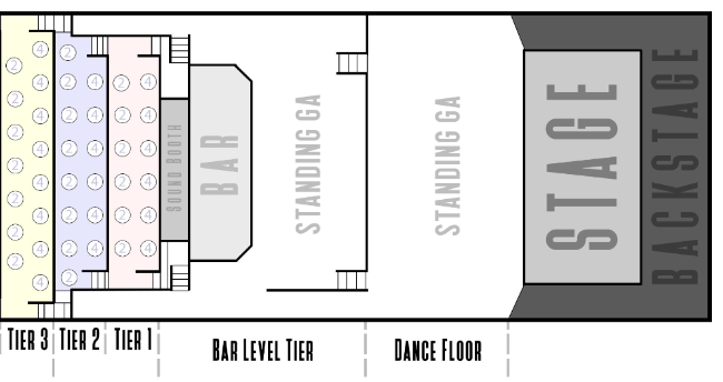 Table tickets include show admission. Tables are assigned and labeled based upon time of purchase and are located in our four-tiered balcony (stair access only).