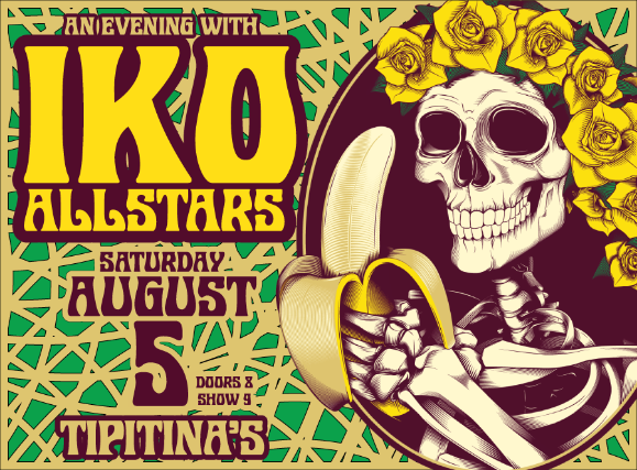 The Iko Allstars, Founded by Guitarist Billy Iuso and joined by Mike "Fou" Fouquier on Drums. The duo Recruits the best musicians New Orleans has to Offer. Reggie Scanlan , Mike Doussan , Brian Stoltz , Papa Mali , John Gros ,Cr Gruver, Willie Green, Johnny Vidacovich & many more have all participated in the past to fill out a 6 piece line up. They have set out to pay tribute to the Dead in their own unique way. The Iko lineup mirrors the Grateful Dead's. Effortlessly, the group places a New Orleans spin on the Dead's jam oriented repertoire. Each of the Allstars bleeds purple, green, and gold. This, combined with their love for the Grateful Dead, comprises the foundation of the Iko Allstars. They ride a wave that was set in motion in 1965; perpetually jamming on songs we've heard many times, and in many different ways. The Iko Allstars truly give us their own interpretation of the music of the Dead.