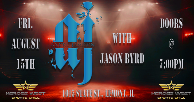 Andru Jamison and Jason Byrd are performing on Friday, August 15th at Heroes West in Lemont. Come early for dinner and stay for the show! This is a 21+ Event