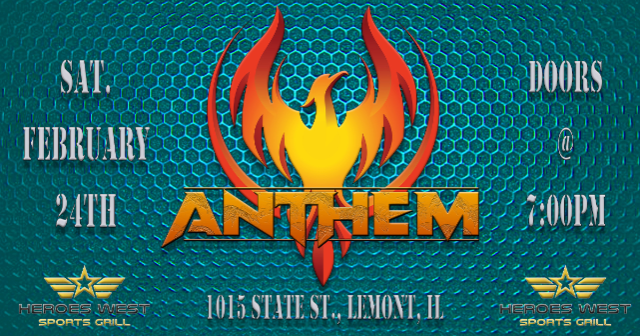 Anthem is performing on Saturday, February 24th at Heroes West in Lemont. Come early for dinner and stay for the show! This is a 21+ Event