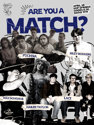 Match Records' "Are You a Match?" semesterly competition show is happening April 28th at Hop Springs. The student record label's A&R team conducts a talent search every semester to find the next Match. Here, five artists will perform a live set and compete to be signed to the roster. Come watch the friendly competition!