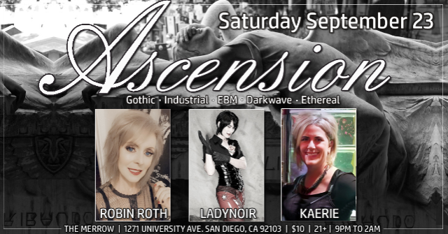 Join us for Ascension on Saturday, September 23rd, at The Merrow. DJs Robin Roth and Kaerie welcome Special Guest Ladynoir! 9PM-2AM. 21+. $10. Advance tickets receive front of the line entry. Coat/purse check available. Free parking at the Hillcrest DMV till 3am. See you on the dance floor!