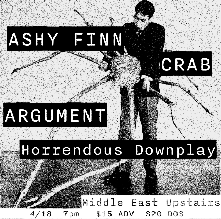 The Middle East presents: Ashy Finn, Crab, Argument, Horrendous Downplay - 18+ $15 Advance / $20 Day of Show, 7:00pm doors