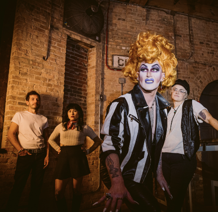 Wearing tall hair and heels, the charismatic seven-foot drag queen Beverly Rage leads the band Bev Rage & the Drinks in a dynamic, visually exhilarating, anarchic garage punk spectacle. Bev Rage & the Drinks’ unique style, which earned them the title of Chicago’s Best Punk Band in 2024, is relentlessly loud, fast, and brash, showcasing a trove of hooks that invite audiences to bop along.