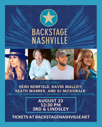 BACKSTAGE NASHVILLE! DAYTIME HIT SONGWRITERS SHOWfeaturing Heidi Newfield, David Malloy, Heath Warren& SJ McDonald+ Macy Dot