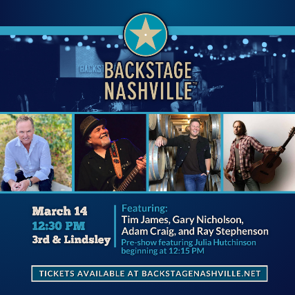 BACKSTAGE NASHVILLE! DAYTIME HIT SONGWRITERS SHOWfeaturing Tim James, Gary Nicholson, Adam Craig& Ray Stephenson+ Julia Hutchinson