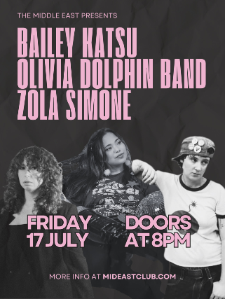 The Middle East presents: Bailey Katsu, Olivia Dolphin Band, Zola Simone - 18+, $15 Advance / $17 Day of Show, 8:00 PM Doors