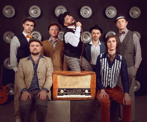 Come fall in love with Odesa, Ukraine, the Pearl of the Black Sea! Kommuna Lux brings you the heritage music of their beloved hometown. Klezmer, Balkan, and Urban Chanson, with a dash of Ukrainian Folk and powered by rocket fuel, Kommuna Lux impacts the crowd with a nostalgic, high-energy Big Band sound from the bygone days of speakeasies and rum runners. When Volodymyr Gitin raises that clarinet to his lips, he becomes the only man in the room—you can’t help but utterly fall into his virtuoso arms. “Heavyweight Champion” Oleg Vasianovich holds his accordion like it’s light as a feather, while he develops the foundation of each melody. Layers of complexity are added by the bold, bright trumpet of Andrei Okhramovich and the sassy, playful trombone of Yaroslav Besh. Viktor Kirilov never stops dancing as he plays his acoustic guitar, and you never know when Sergei Poltorak will pause on the percussion to punk the rest of the band with a sly prank. At center stage is sultry powerhouse Bagrat Tsurkan, whose hot buttered voice and nonstop energy compel everyone to the dance floor.