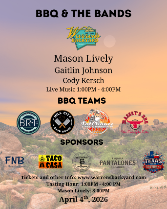 Join us for our first annual BBQ and The Bands at Warren's Backyard on April 4th!