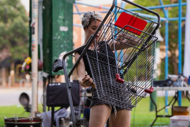 Her approach avoids traditional performance contexts by operating in public and pedestrian spaces—street corners, tunnels, rooftops, and markets—where the work interrogates its own role within everyday environments. These site-responsive performances frequently involve sound, improvisation, and spontaneous collaboration, prioritizing process over outcome and dismantling conventional hierarchies between artist, viewer, and place.