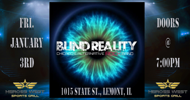 Blind Reality is performing on Friday, January 3rd at Heroes West in Lemont. Come early for dinner and stay for the show! This is a 21+ Event