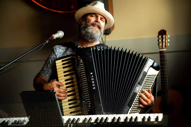 He is a solo multi-instrumentalist, accompanying his vocal with piano, accordion, and guitar. This allows him to play a wide variety of genres to suit any venue or vibe.