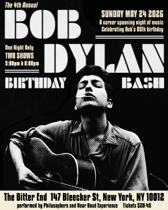 The Many Sides Of Bob Dylan is a career spanning tribute performed by Near Dead Experience (an NYC based Grateful Dead cover project) and Philosophers (the original project of songwriter Phil Radiotes). Delve deep into Dylan’s catalog with the band as they blend folky and jammy elements together to bring a fresh sound to these important songs. We celebrate the poet laureate of rock 'n' roll, the voice of the promise of the 60's counterculture. The guy who bedded folk with rock, who donned makeup in the 70's and disappeared into a haze of substance abuse, who emerged to find Jesus, who was written off as a has-been in 80's, and who suddenly shifted gears releasing some of the strongest music of his career beginning in the late 90's. Come celebrate the many sides of Bob Dylan with us.