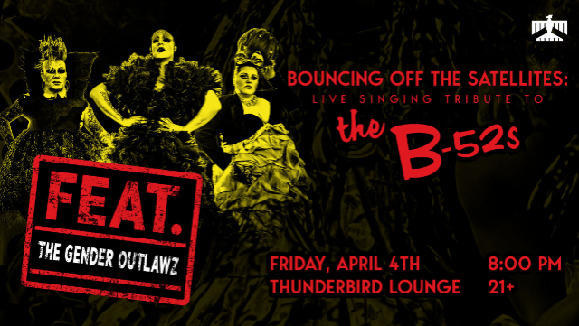 Come see Erickatoure Aviance, Pandora DeStrange, & Gin V Tinkle DeStrange, Phoenix's own live singing drag troupe, take on The B-52's! They will be singing all your favorites from the swingingest band in the land!