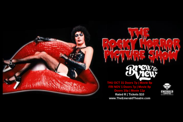 Come check out Rocky Horror Picture Show at the historic Emerald Theatre. Dress in costume and bring your own props.  We offer hotdogs, popcorn, candy and a full service bar! Ticket valid for any one of the three showings. THU OCT 31 Doors 7p | Movie 8p FRI NOV 1 Doors 7p | Movie 8p Doors 10p | Movie 11p Rated R | Tickets $10  Website: www.theemeraldtheatre.com Instagram: @emeraldtheatre #emeraldtheatre