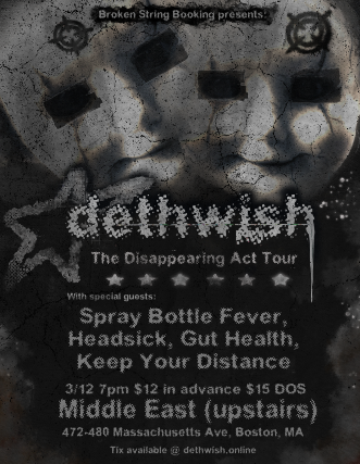 The Middle East & Broken String Booking Presents: Dethwish, Spray Bottle Fever, Headsick, Gut Health, Keep Your Distance - 18+, $12 Advance / $15 Day of Show, 7:00 PM Doors