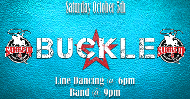 Join us on Saturday, October 5th when Buckle performs at Saddle Up @ Q. Line dance lessons start at 6pm and the band takes the stage at 9pm.