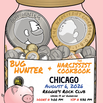 VIP Description: Come early (5:30 PM) to the venue to listen to both artists play a couple extra songs + audience Q&A, pre-show access to merch (skip the line after the show!) and take a photo with Bug Hunter and The Narcissist Cookbook. THIS TICKET INCLUDES GA ACCESS TO THE SHOW!