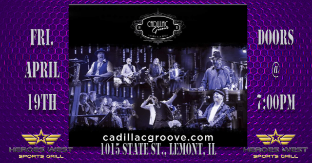 Cadillac Groove is performing on Friday, April 19th at Heroes West in Lemont. Come early for dinner and stay for the show! This is a 21+ Event