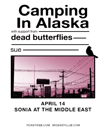 The Middle East presents: Camping in Alaska, Dead Butterflies, Sue, Awnthay - 18+, $20 Advance / $25 Day of Show, 6:30 PM Doors