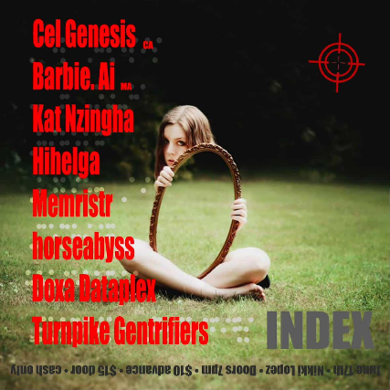 Cel Genesis, Barbie, Ai, Kat Nzingha, Hihelga, Memristr, horseabyss, Doxa Dataplex, Turnpike Gentrifiers