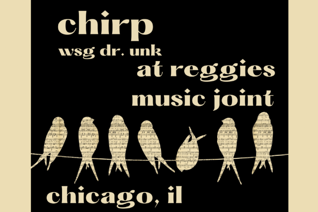 Chirp has been hard at work since their formation in 2015, touring and recording consistently since the project began. Their fresh sound has taken them touring across the Midwest to play a large variety of venues and festivals. Chirp released their self-titled debut studio album in March 2019 as well as three live-recorded EPs: "Live from Brownstown" (in-studio, 2016), "Live at Willis Sound" (in-studio, 2017), and “Live at Ann Arbor Summer Festival” (2018). All of which have been met with great reception and have helped along with live performances to build an extremely enthusiastic fan base. Chirp is Jay Frydenlund, Brian Long, Sam Naples, and Patrick Blommel.