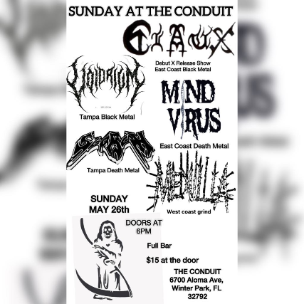 Claux Record Release Show w/ Mind Virus, Voidrium, Scorch, and Medulla