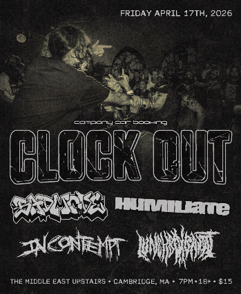 The Middle East presents: Company Car Presents: Clock Out, Bad Move, Humiliate, In Contempt, Lunchbox Bandit - 18+, $15, 7:00 PM Doors