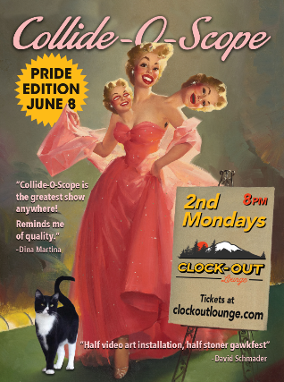 One of our biggest and best shows of the year — bursting with fun, frivolity, politics, and pizzazz! A celebratory freakout of found-footage mayhem, mashing up and remixing queer history and pop culture into a dizzying video spectacular full of kaleidoscopic color, music, comedy, and history. You’ll laugh, you’ll cry, you’ll cringe as you join the video wizards of Collide-O-Scope on a voyage of sight and sound, exploring the wonderful, weird, marvelously messy spectrum of Pride!