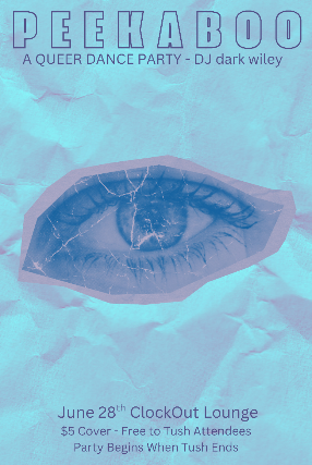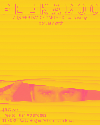 Peekaboo! We see you, out there surrounded by hot queers on the dancefloor. Oh that isn't you? Well it SHOULD BE! DJ dark wiley is bringing back your favorite night at the Clock-Out Lounge on February 28th! Dance the night away or lounge with your favorite people. We'll be throwing this party after the Friday show each month to create a space for you to escape from the world and feel the love! Free to Tush attendees and $5 for everyone else! Party starts the moment Tush ends!