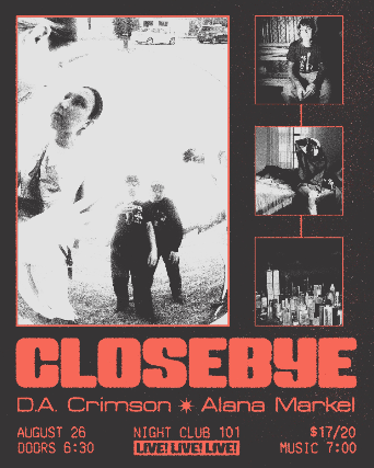 Closebye, the Dallas-hailing, New York-based band formed by Jonah Paul Smith and Julian Paint Smith during high school, bonded over an orange juice incident and later founded the band in New York City, releasing the EP “Boring the Camera” in 2017. Influenced by Elliott Smith, Aimee Man, and The Dandy Warhols, Closebye developed a distinctive folk-rock sound, performing extensively in New York City alongside renowned indie acts.