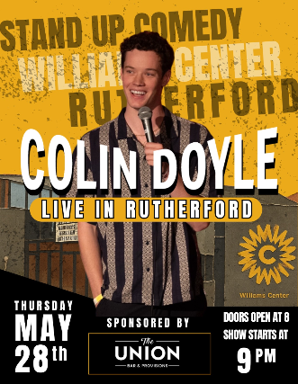 Colin Doyle, a 22-year-old comedian born and raised in Rutherford who performs regularly at comedy clubs in Manhattan, is presenting a hometown stand-up comedy performance. Joined by opening acts from established NYC comedians.