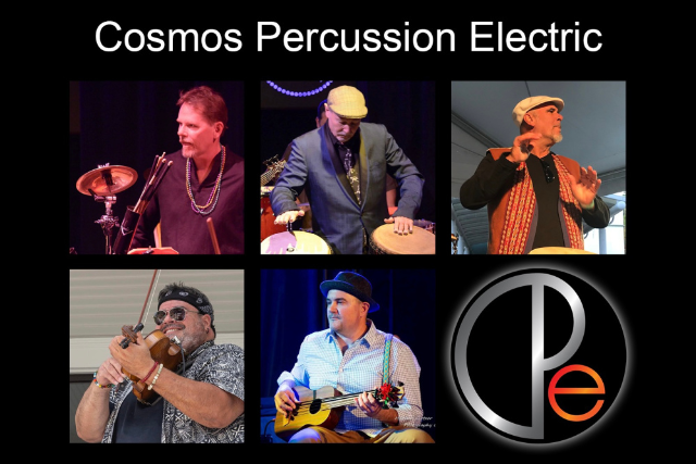 Cosmos Percussion Electric creates and performs original and highly orchestrated, rhythmic and melodic music, incorporating a fusion of both traditional and contemporary sources. Their music utilizes the voices of many instruments, over a wide range of genres; inclusive of Afro Caribbean, Latin, Funk, Rock, Jazz, West African, Mediterranean, Brazilian, Ska, and their own Cosmos Fusion.