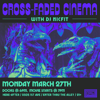 Cross-Faded Cinema is a new film series curated by Seattle's own DJ Nicfit. Inspired by the Pink Floyd and Wizard of Oz psychedelic mash-up, Nicfit changes the soundtrack of cult classic films and gives them a new spin, live on two turntables. Come see why the Seattle International Film Festival calls these remixed movies "mesmerizing."