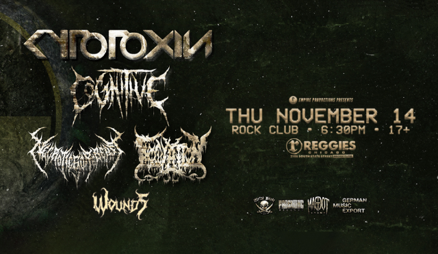 Reggies Rock Club Thursday, November 14th 6:30pm doors | 7pm show | $20 | 17+ Empire Productions Presents: Cytotoxin Cognitive Inoculation Necroticgorbeast Wounds