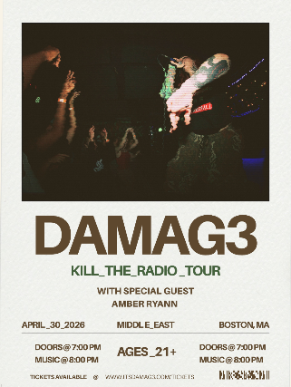 The Middle East presents: Damag3, Amber Ryann - 18+, $20 Advance / $25 Day of Show, 7:00 PM Doors