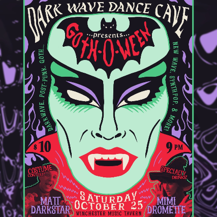 Dark Wave Dance Cave returns on Saturday, October 25th for Goth-O-Ween - our huge yearly Halloween bash! We'll have The Winchester decked out with Halloween decorations and candy, with a costume contest at midnight, themed drink specials, photography by Extraordinaire Photos, and a spooky photo backdrop! Meanwhile DJs Mimi Dromette and Matthew Darkstar will be spinning the spookiest darkwave, goth, synthpop, post-punk, and new wave dance tracks all night We’ll be announcing details on the contest and drink specials on Instagram as we get closer to the event