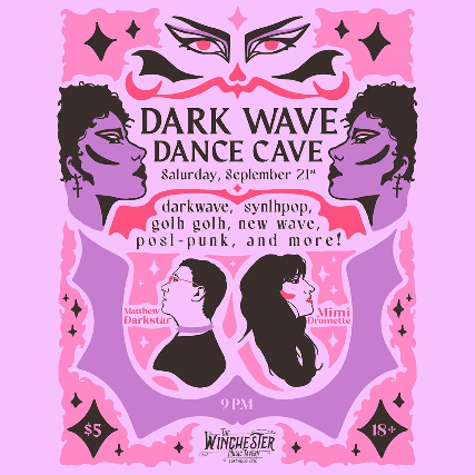 Dark Wave Dance Cave returns to The Winchester Music Tavern on Saturday, September 21st with DJs Mimi Dromette and Matthew Darkstar spinning the hottest darkwave, synthpop, new wave, goth, and post-punk for the dance floor all night!