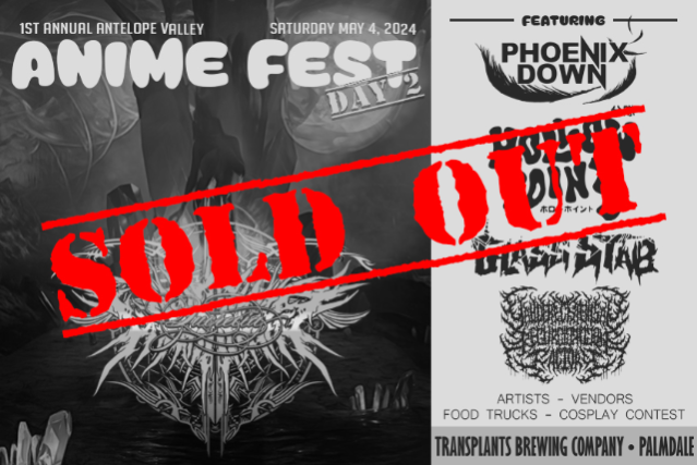 The 1st Annual Antelope Valley Anime Fest is exactly what you think it is. We have created this event to bring the anime community of the Antelope Valley together. Hosted at Transplants Brewing Company (@transplantsbrewing), you’ll find a variety of local artists, vendors/shops, and cosplayers (including a cosplay contest). The festival will culminate with an anime themed metalcore show featuring Lucrecia (@lucreciaband) as our headliner with local AV bands supporting: @phoenixdown661, @hollowpoints661, @glass_stab, and @yanderechainsawregurgitation.