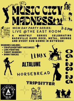 A daytime concert + local vendor market celebrating Nashville’s alternative music scene — from rock and metal to grunge, funk, pop, R&B, and everything in between.