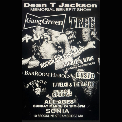 Cringe Presents: Dean Jackson Memorial Benefit Show feat : Gang Green, TREE, The F.U.'s, Rockin Bob's Punk Band, Richie's Kids, Gusto, Barroom Heroes, Spectacle, TJ Welch & The Wasted & special guest Springa - All Ages, $20 Advance / $25 Day Of Show / $50 VIP, 1:00 PM Doors